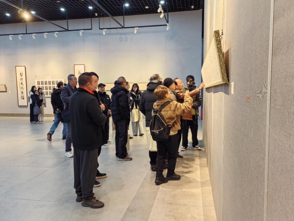 陈均土宣布展览开幕。现场嘉宾移步展厅,共同领略硬笔书法与毛笔书法交融互映的艺术魅力。