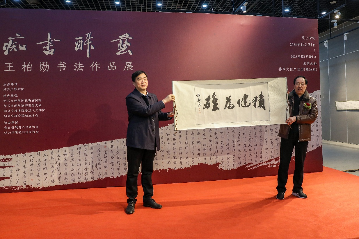 古城绍兴翰墨飘香、群贤毕至,2025年12月31日上午,“痴书醉艺——王柏勋书法作品展”在伟丰文化产业园开幕。本次展览由绍兴文理学院主办,校党委宣传部、离退休党委、鲁迅人文学院、校友总会承办,浙江省硬笔书法家协会、绍兴市硬笔书法家协会协办,集中展出了王柏勋教授近年来创作的精品力作,涵盖正、草、隶、篆、碑诸体。