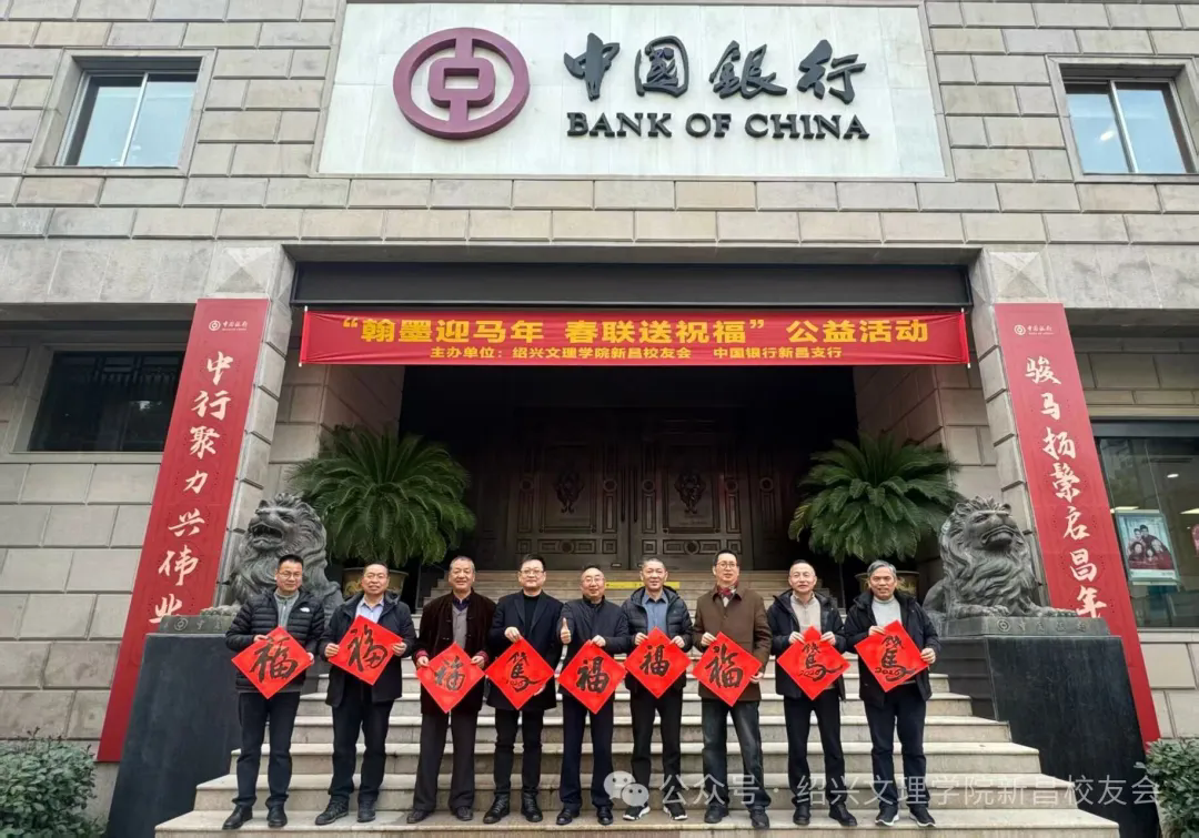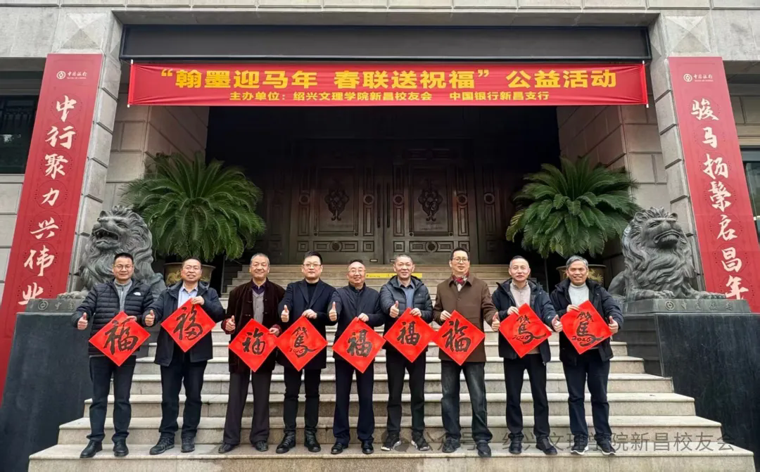 翰墨迎马年,春联送祝福。2026年1月29日,绍兴文理学院新昌校友会与中国银行新昌支行联合开展写春联送祝福公益活动。数九寒天,融融暖意却在墨香中氤氲。