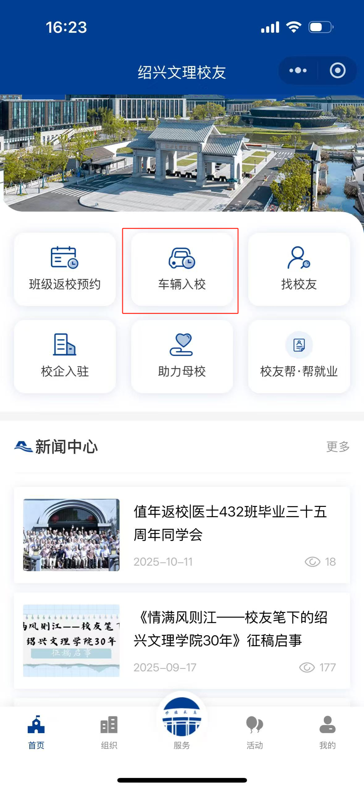为提升校友返校体验,持续优化校友服务质量。经学校商议,决定对校友车辆实行免费进出校园的政策。校友结合自身需要可以进行申请。